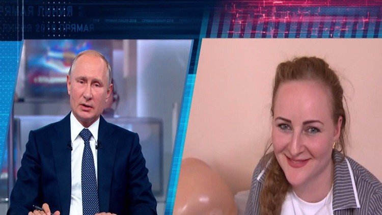 إيرينا بركة ، إمراة أوكرانية تسببت الحرب السورية في فقدانها أطرافا وأدت لإبعادها عن عائلتها منذ عامين ، وكانت ممن حالفهم الحظ بالتواصل مع الرئيس فلاديمير بوتين خلال الخط المباشر.