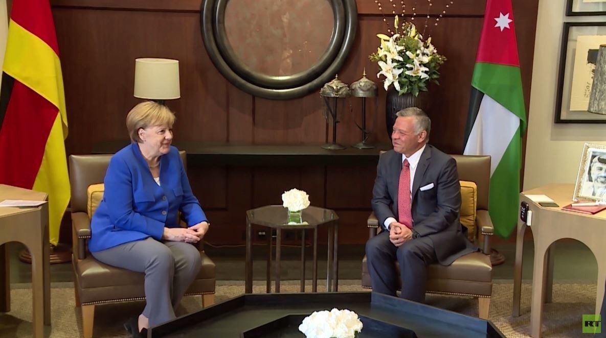 أعلنت المستشارة الألمانية أنغيلا ميركل خلال لقائها العاهل الأردني عبد الله الثاني في عمّان دعم المملكة بقيمة ثلاثمئة وخمسة وثمانين مليون يورو كمشاريع إنمائية تشمل اللاجئين السوريين