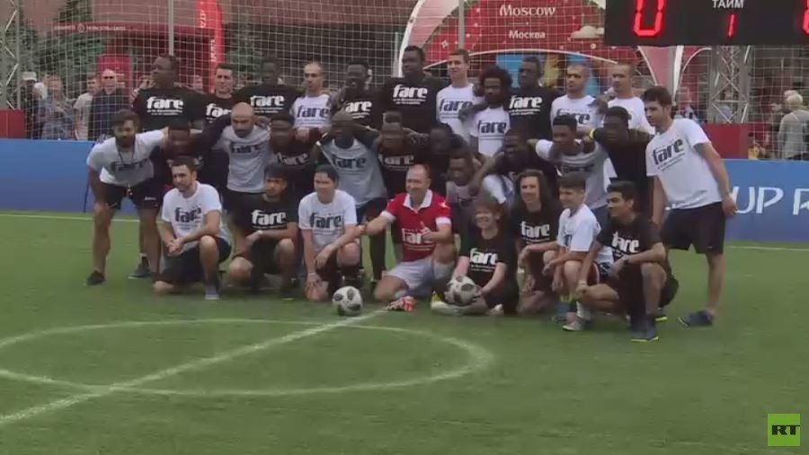 على هامش المونديال، نظمت شبكة "فار" المناهضة للعنصرية والتحيز في كرة القدم الأوروبية بالتعاون مع الفيفا مباريات بين لاجئين ومشجعين من مختلف البلدان في متنزه الساحة الحمراء بموسكو.