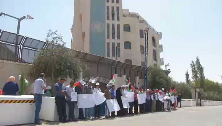 نظم فلسطينيون وقفة احتجاجية أمام مقر الأمم المتحدة في رام الله للاعتراض على ما اعتبروه سرقة إسرائيلية لمخصصات الأسرى المالية.