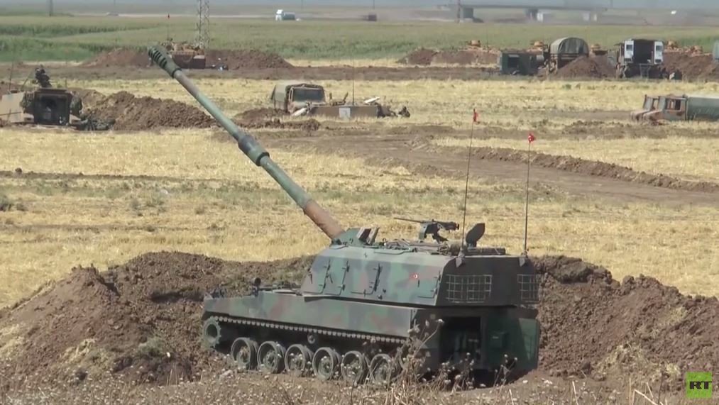 إطلاق قذائف من مدفعيات الجيش السوري خلال اشتباكات مع قسد قبيل دخولها ريف الرقة الغربي