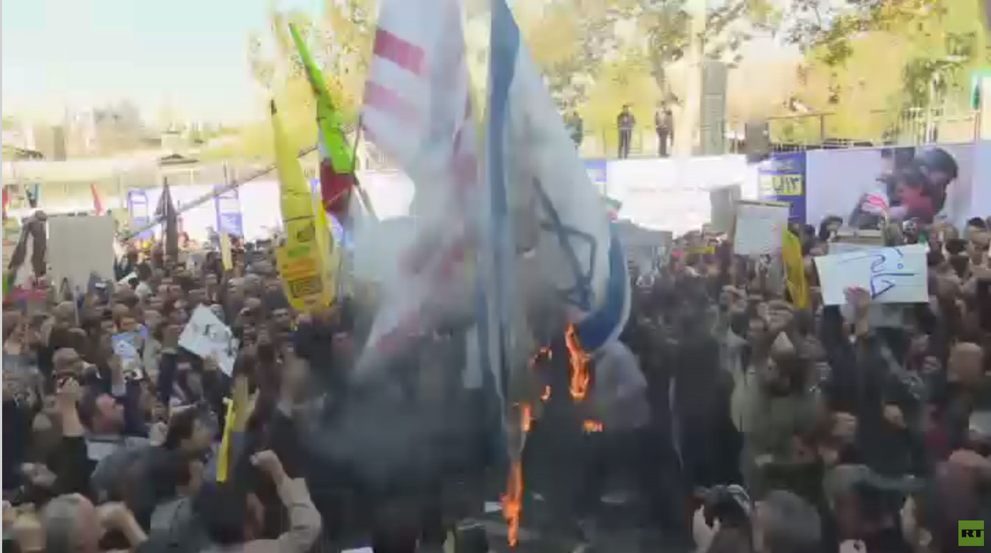 شهدت طهران ومدن ايرانية أخرى اليوم تظاهرات واسعة عشية دخول الحزمة الثانية من العقوبات الأمريكية حيز التنفيذ، تزامنا مع الذكرى الأربعين لاقتحام السفارة الأمريكية.