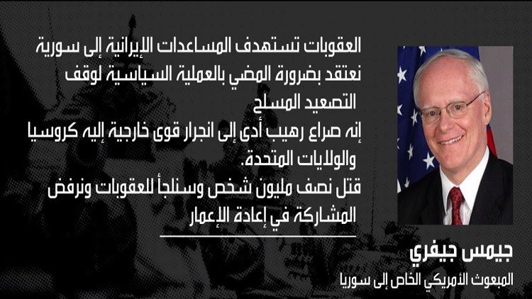 وأكد جيفري في تصريحات صحفية إلتزام بلاده بالعملية السياسية في سوريا وعدم سعى الولايات المتحدة لتغيير النظام في دمشق