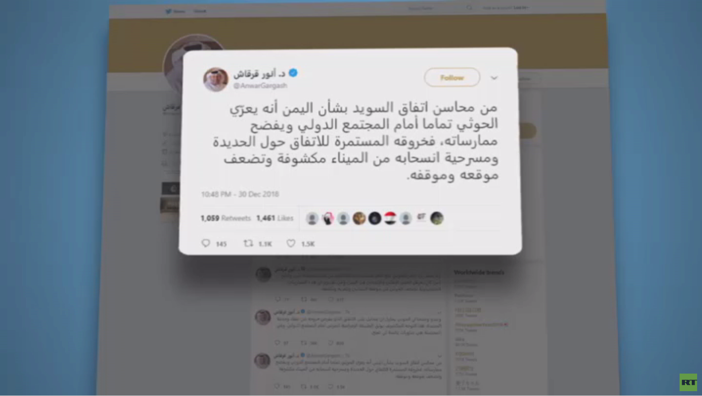 اتهم وزير الدولة الإماراتي للشؤون الخارجية "أنور قرقاش" الحوثيين بالتحايل على اتفاق السويد بشأن الحديدة وأشار قرقاش إلى أن هذا الاتفاق يعري الحوثيين أمام المجتمع الدولي وفق وصفه