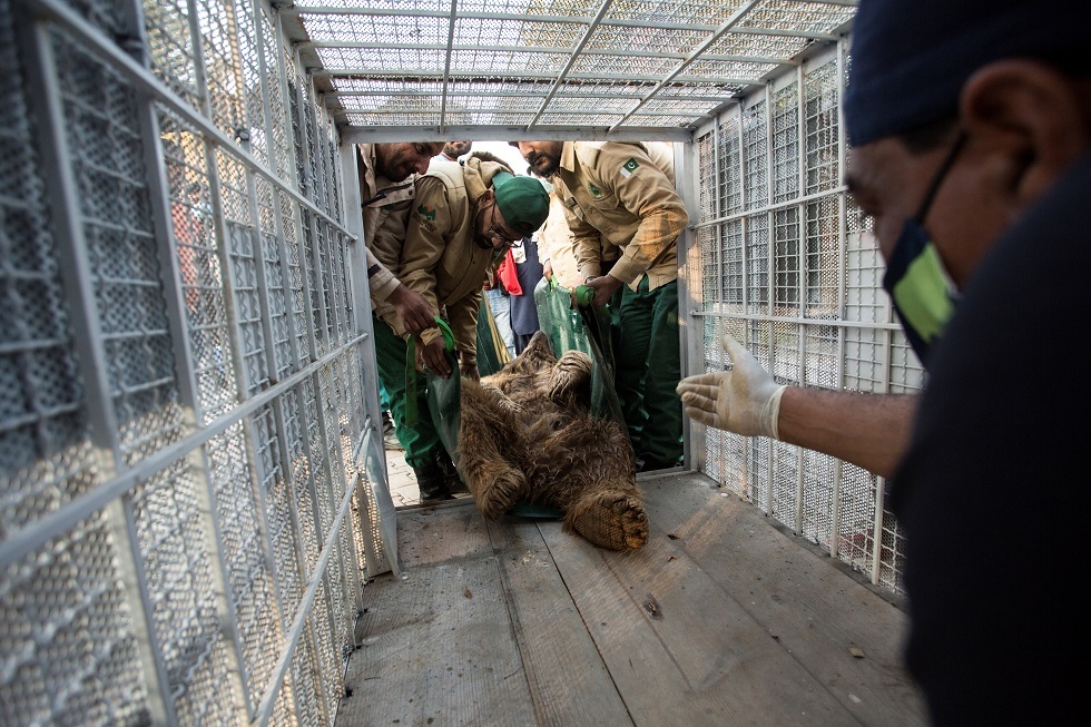 نقل زوجين من الدببة من حديقة الحيوان في إسلام أباد إلى محمية بالأردن (صور)