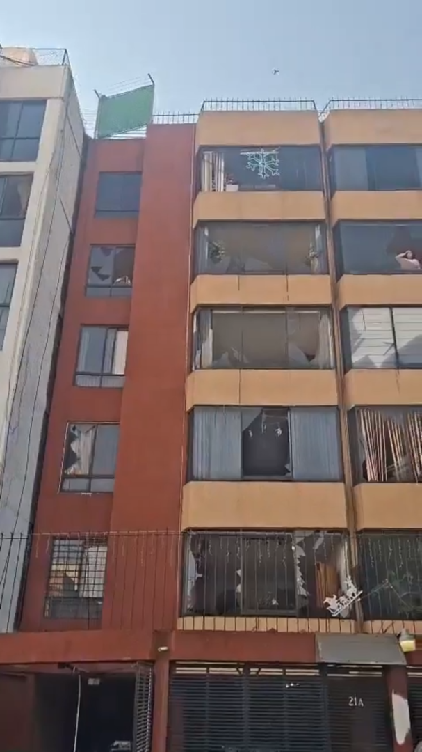 وفي الفيديو المتداول على وسائل التواصل الاجتماعي، يمكن رؤية كيف دمرت الموجة الصدمية النوافذ والحواجز المعدنية وجزءا من هيكل الطابق الثالث من المبنى، مما أدى إلى انتشار الحطام في الطريق.