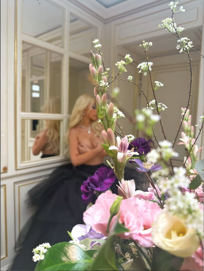ونشرت المغنية البالغة من العمر 45 عاما سلسلة من الصور على "إنستغرام"، شملت لقطات لها بالعقد وفي حوض الاستحمام، ولقطات أخرى لها بزي آخر ومشاهد للشفق القطبي، معلقة عليها بالقول: ""أضواء الشمال، ليالي باريسية".