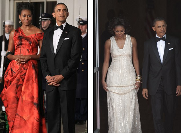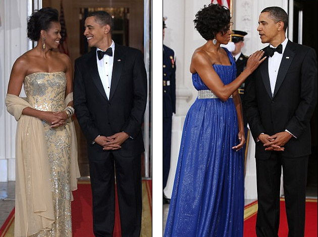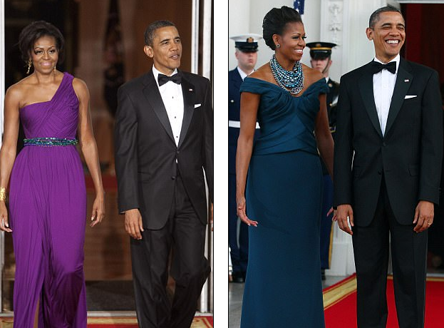 وقالت ميشيل أوباما، إن الرئيس الأمريكي السابق، كان يرتدي البذلة ذاتها سنويا، في حفلات العشاء، وهذا الشيء غير عادل، في ظل التقاط المصورين العديد من الصور للأحذية التي أرتديها والأساور، ولكن لم يعلق أحد على ارتدائه الطقم والحذاء نفسيهما مدة 8 سنوات.