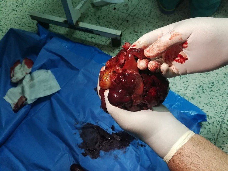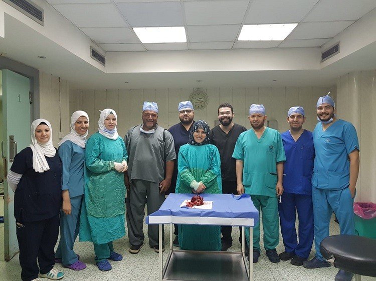 وضم الفريق الطبي إلى جانب قداح: ثلاثة جراحين وطبيبي تخدير، وفردين من التمريض، واستمرت العملية ساعة ونصف، استأصلوا خلالها ورما وزنه 1.1 كلغم، وتكللت العملية بالنجاح.