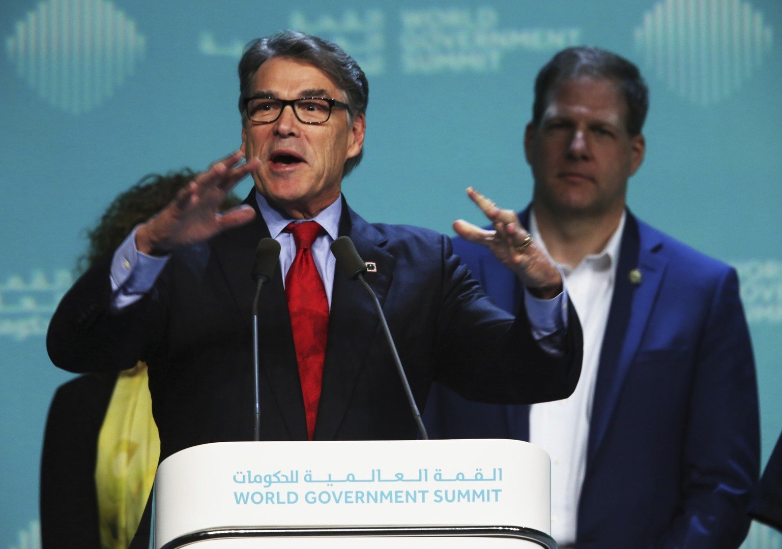 وأكدت وكالة "أسوشيتد برس" أن بيري، وهو حاكم تكساس السابق، وكان قد ترشح مرتين لمنصب رئيس الولايات المتحدة، صعد اليوم الأحد على منصة القمة للإعلان عن مسابقة روبوتات دولية ستنظم في الإمارات العام الجاري.