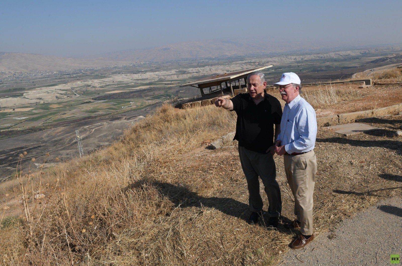 نتنياهو يصطحب بولتون بجولة في غور الأردن ويدعوه لزيارة الجولان (صور+ فيديو)