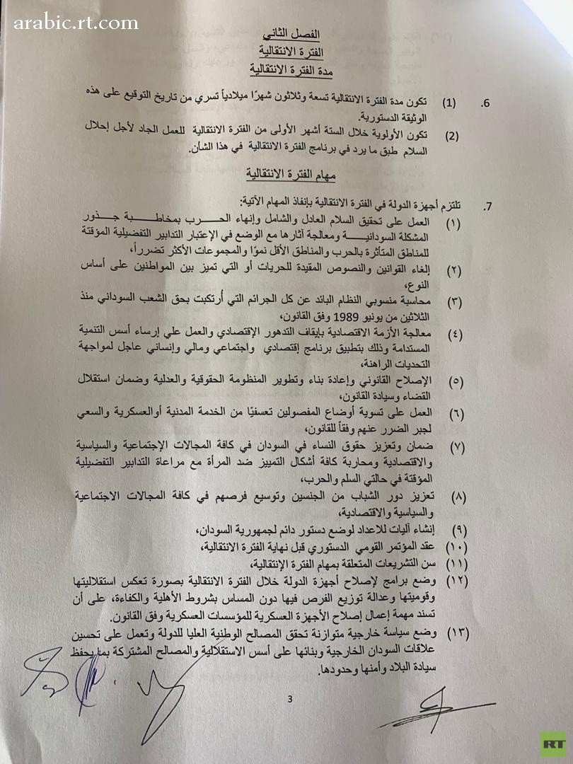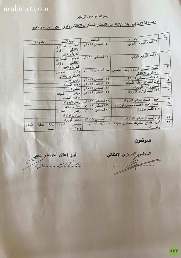 وسيتم تعيين رئيس الوزراء في الـ20 من أغسطس وستعقد الحكومة أول اجتماع لها في الـ28 منه، كما سينعقد أول اجتماع مشترك بين مجلس الوزراء ومجلس السيادة في الأول من سبتمبر.