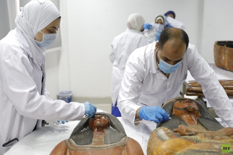 وقالت المديرة العامة للصيانة والترميم بمتحف الحضارة، منال عبد المنعم، إن التابوتين فور فك تغليفهما سيخضعان لأعمال التنظيف والصيانة والترميم اللازمة، وكذلك الجثتين المحنطتين بداخلهما، حتى تكونا جاهزتين للعرض عند افتتاح قاعات خاصة قريبا.