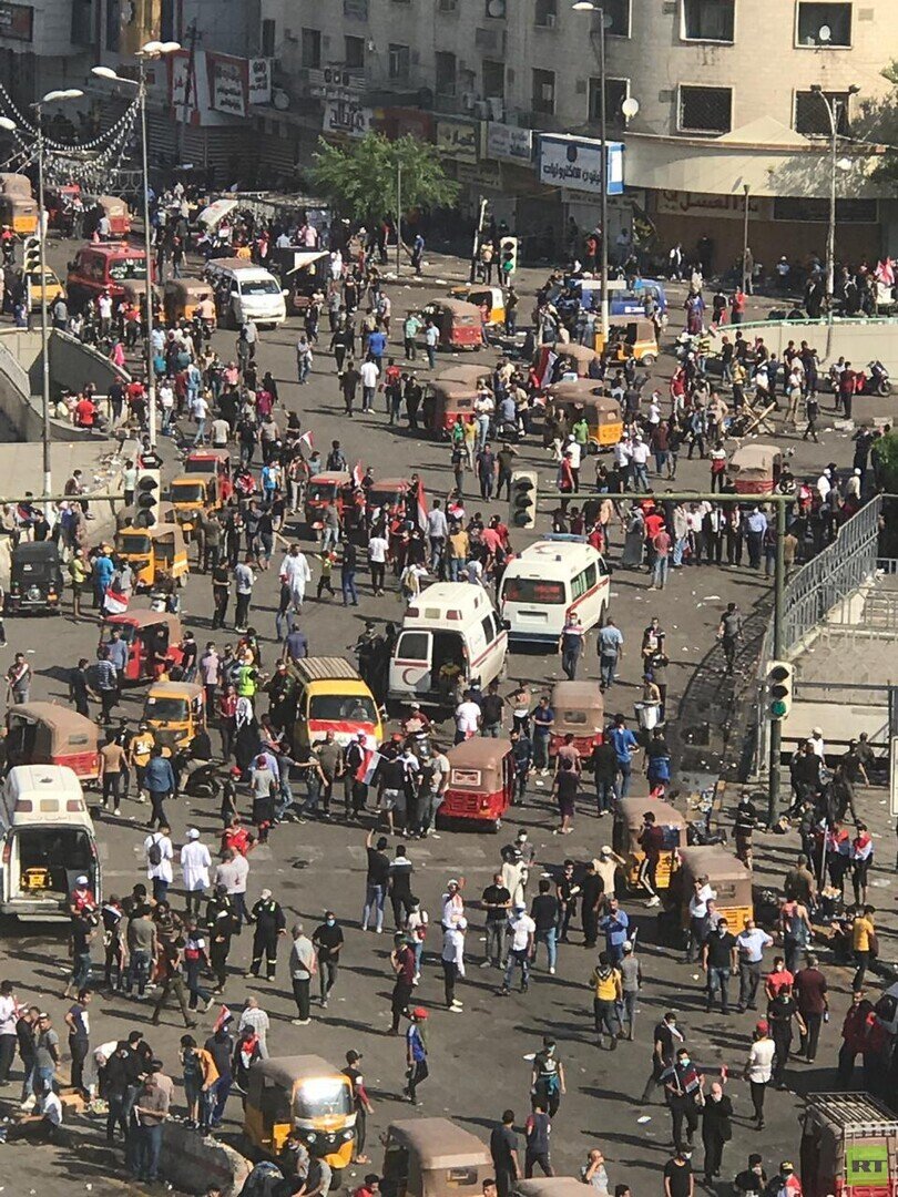 وأكد المراسل، حدوث إطلاق كثيف لقنابل الغاز على ساحة التحرير مع تزايد أعداد المحتجين التي تقدر بالآلاف، في وقت ما زالت فيه سيارات الإسعاف تخلي المصابين إلى مستشفيات العاصمة.