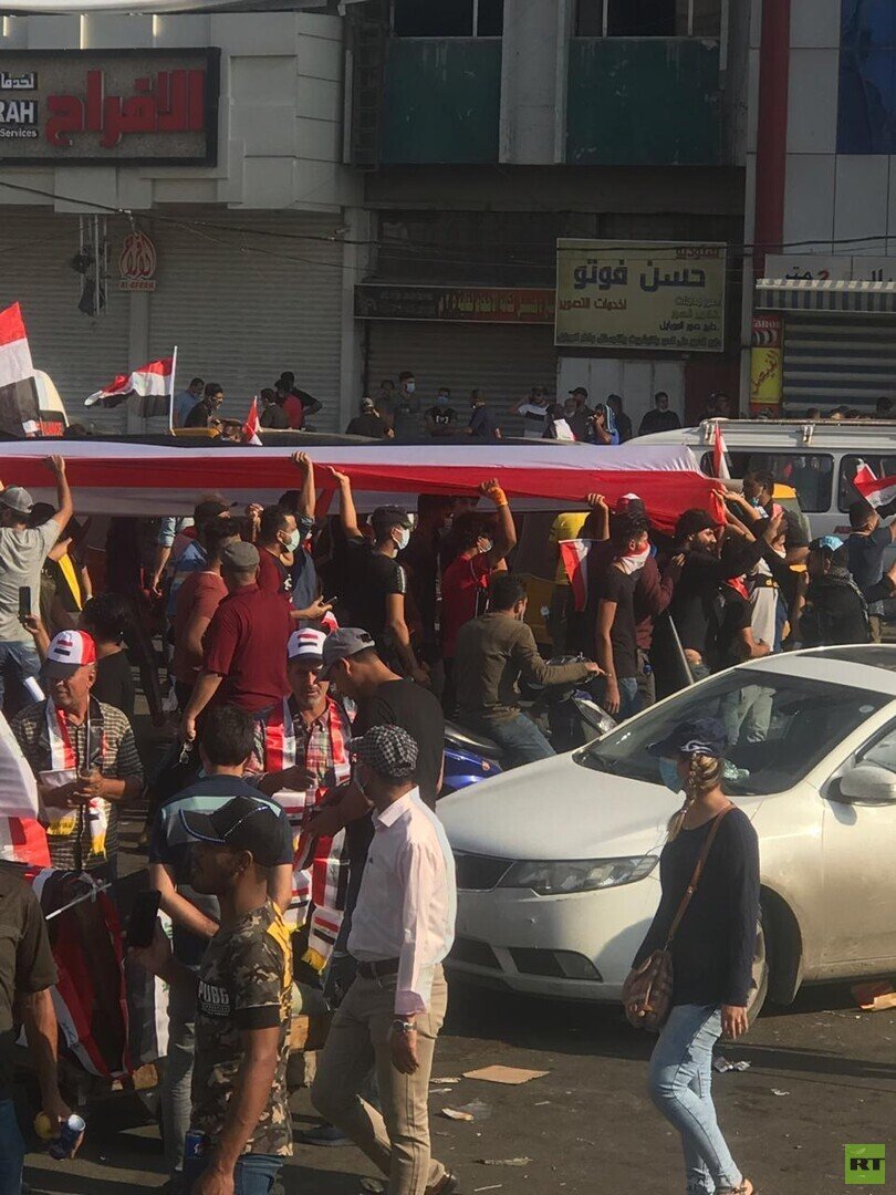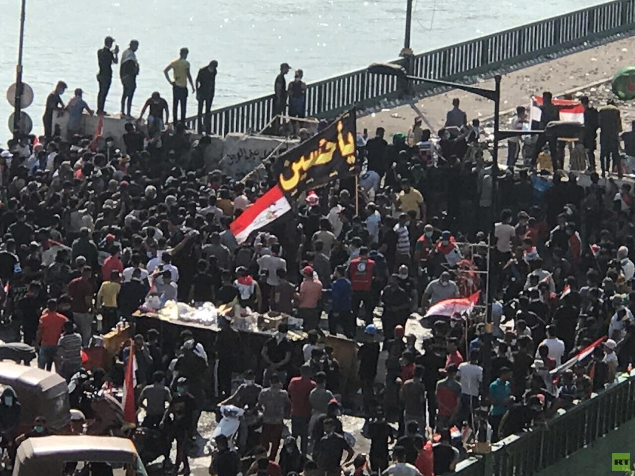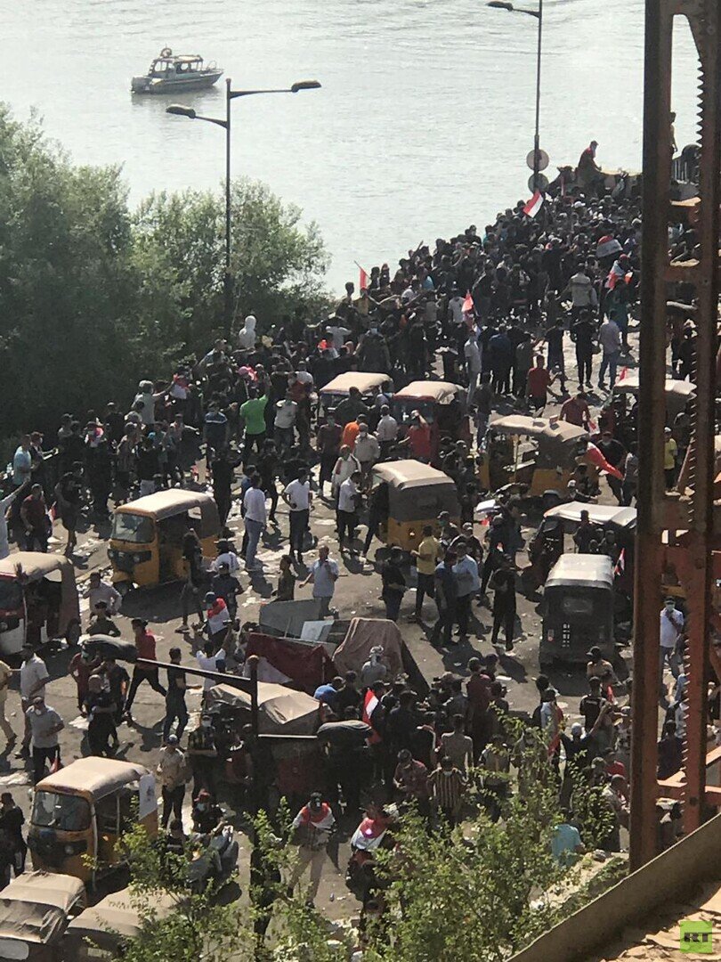 أفاد مراسلنا في بغداد، بأن حشودا غفيرة من المحتجين وصلت ساحة التحرير وسط العاصمة بغداد، وقامت القوات الأمنية بتفريق المتواجدين على جسر الجمهورية باستخدام قنابل الغاز المسيل للدموع.