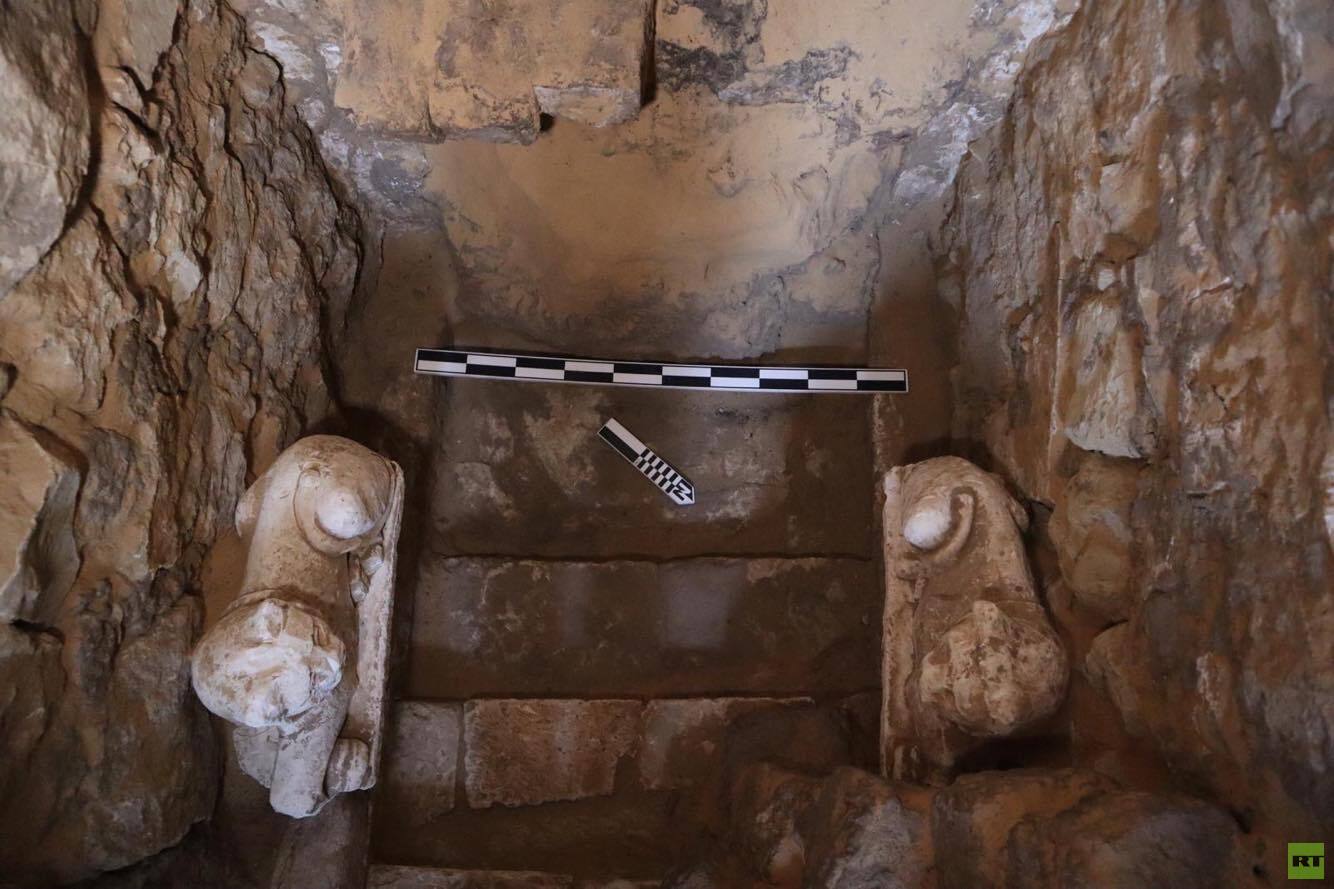 وأضاف أن البعثة عثرت أيضا على اثنين من التماثيل على هيئة أسدين مصنوعين من الحجر الجيري ومحفورين في الصخر، يبلغ طول كل منهما نحو 55 سم بارتفاع 33 سم.