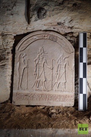 وتتكون المقبرة الجديدة من بناء مقبب من الطوب اللبن به سلم داخلي، وغرفة منحوتة في الصخر ومصنوعة من الحجر الجيري، عثر بداخلها على "نيشة" محفورة بالصخر تحتوي على لوحة مستديرة الشكل صور عليها الإله "سوكر وتحوت وأنوبيس" من اليسار إلى اليمين، وأسفل الصورة سطران من النقوش اليونانية.