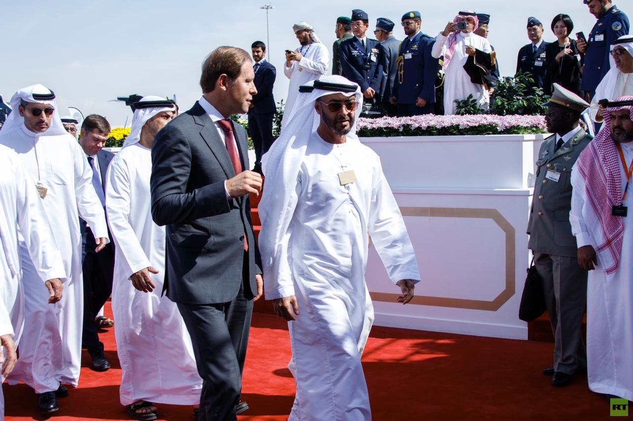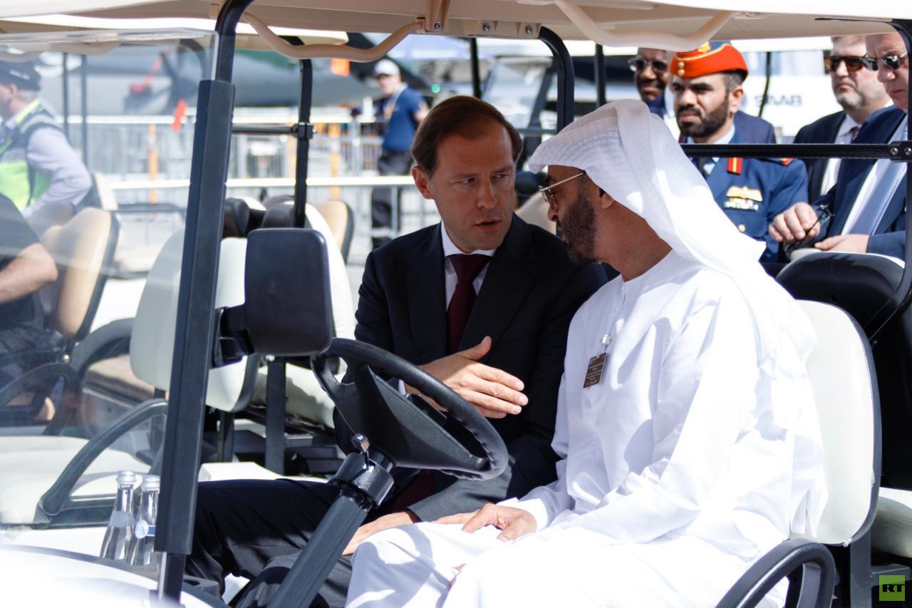التقى وزير الصناعة الروسي، دينيس مانتوروف، بولي عهد أبو ظبي، الشيخ محمد بن زايد آل نهيان، على هامش المعرض الدولي للطيران الذي تحتضنه دبي.