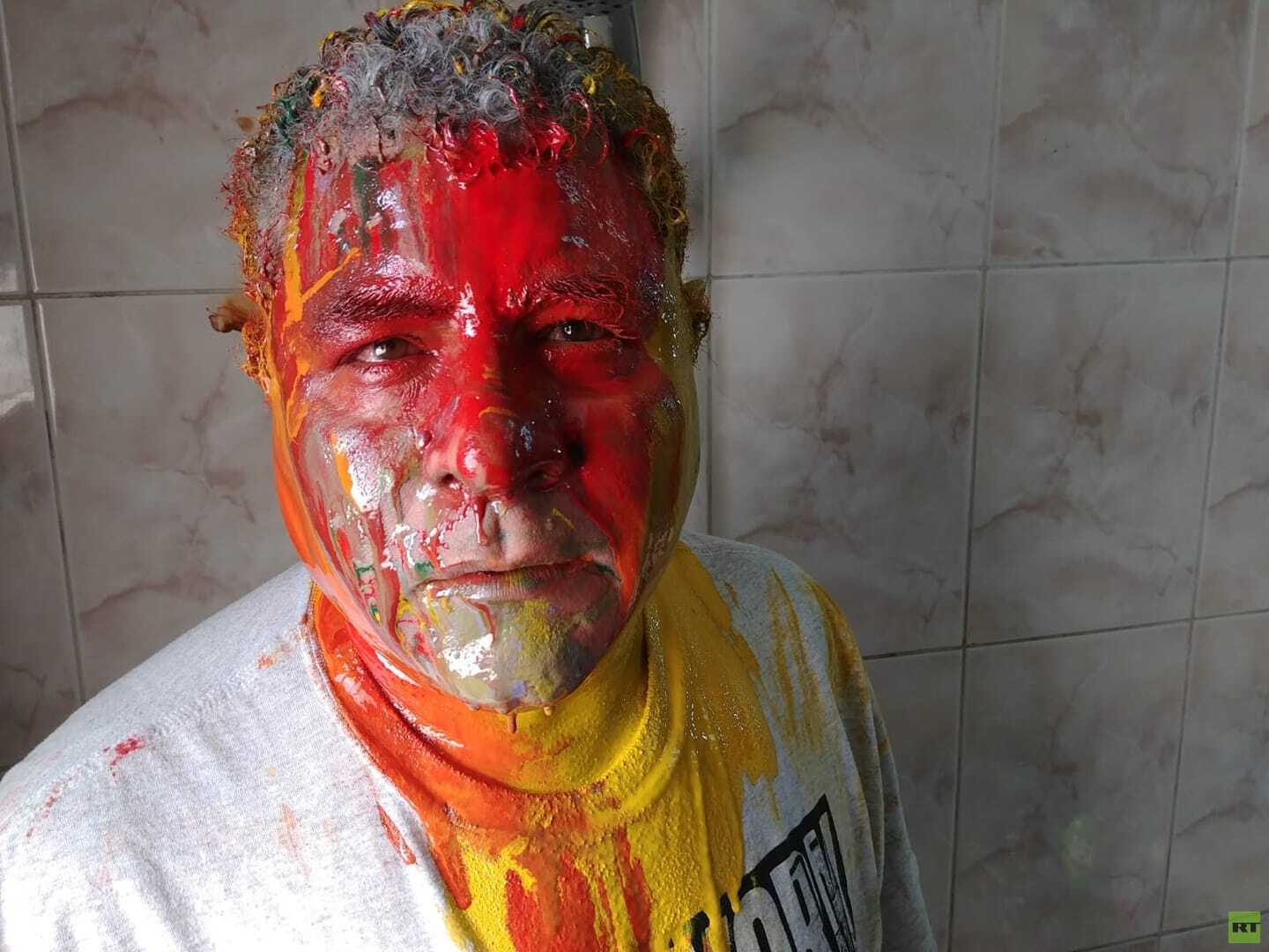 وجاء الرد بعد أن نشر جمال عيد صورة على صفحته الرسمية على "فيسبوك"، قال فيها إن نحو 10 أو 12 من أفراد الأمن طرحوه أرضا وقاموا بإغراق وجهه في ألوان دهانات الجدران على حد قوله.
