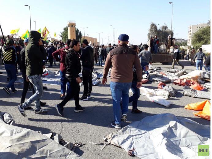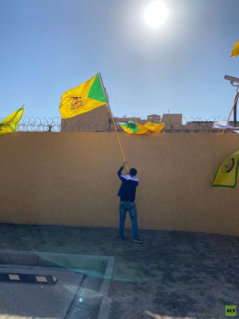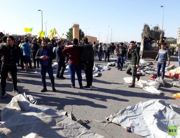 أفاد مصدر لـRT في العراق، الثلاثاء، بأن موالين للحشد الشعبي العراقي طوقوا مبنى السفارة الأمريكية في العاصمة العراقية بغداد، حيث نصبوا خياما، مطالبين بإقفالها.