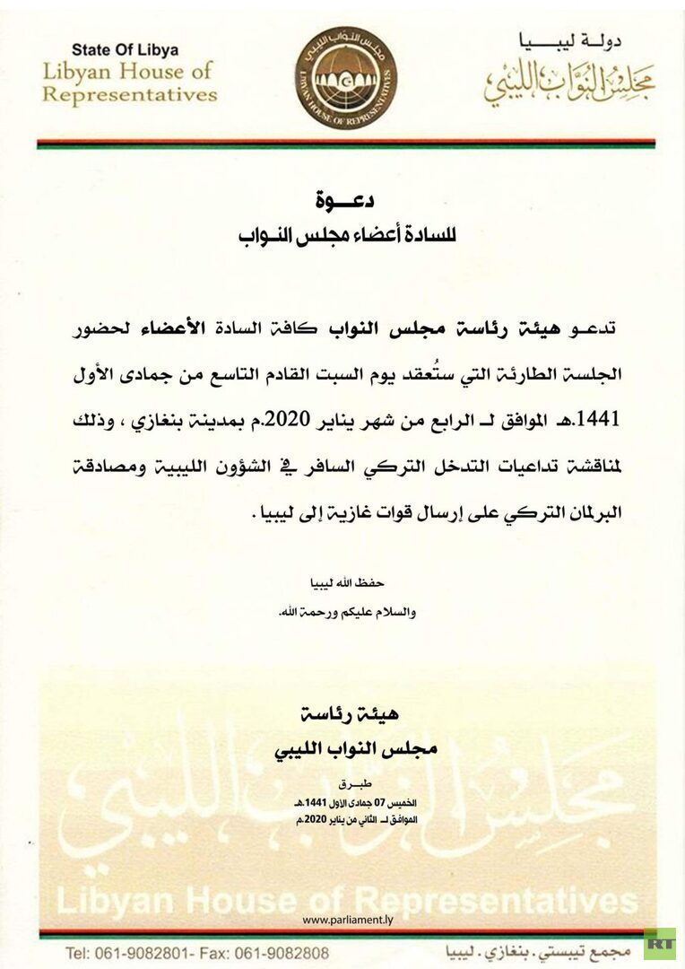 أعلن مجلس النواب الليبي ومقره طبرق اليوم الخميس، أنه سيجتمع غدا السبت لمناقشة التدخل التركي السافر في ليبيا.