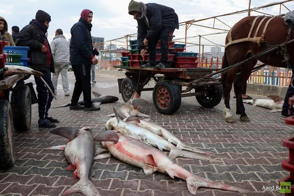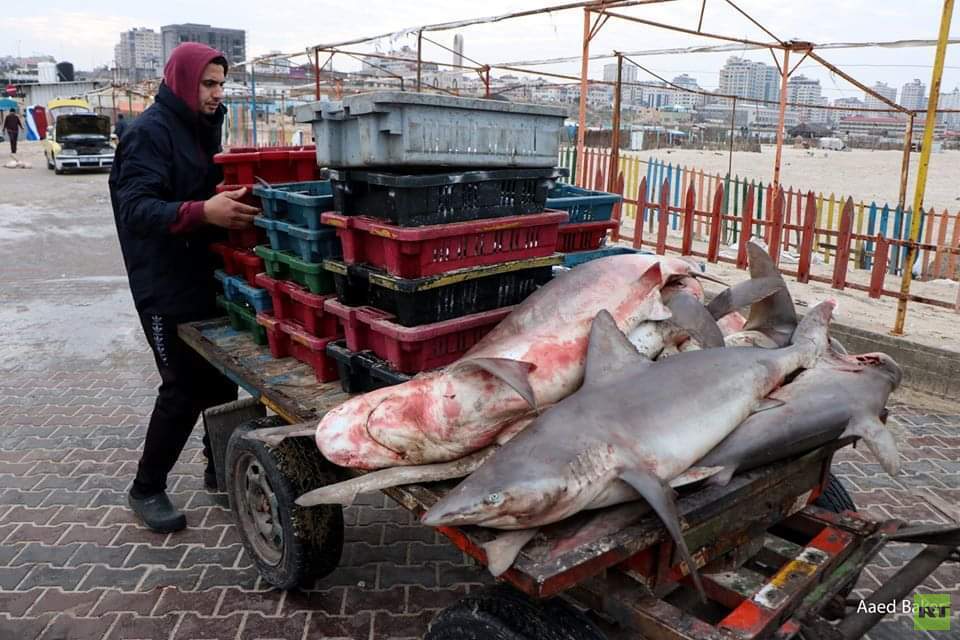 تمكن صيادو قطاع غزة، صباح اليوم الأحد، من صيد كمية من أسماك القرش.