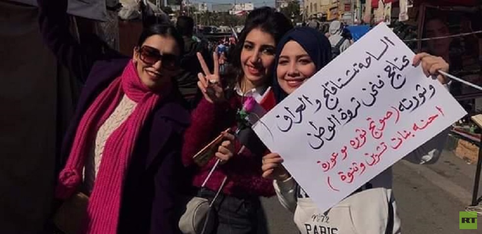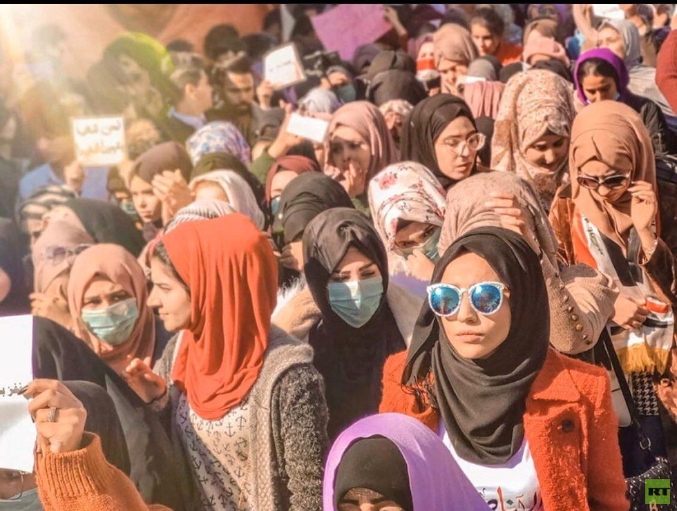 وقال مراسل RT إن "الآلاف من النساء تظاهرن في بغداد ومحافظات وسطى وجنوبية ونددن بعمليات الاختطاف والقتل التي تعرض لها المحتجون خلال الأشهر الماضية، ورددن شعارات مناهضة للولايات المتحدة الأمريكية وإيران".