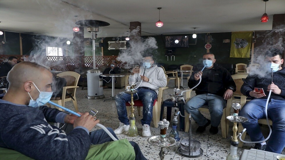 نشرت وكالة الصحافة الفرنسية، صورة تظهر عددا من الشبان الفلسطينيين يدخنون "النرجيلة" وهم يرتدون أقنعة واقية في مقهى بمدينة الخليل في الضفة الغربية، وسط مخاوف من تفشي فيروس كورونا.