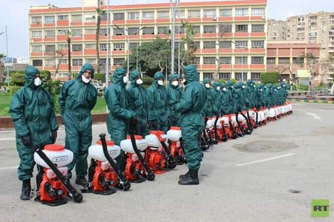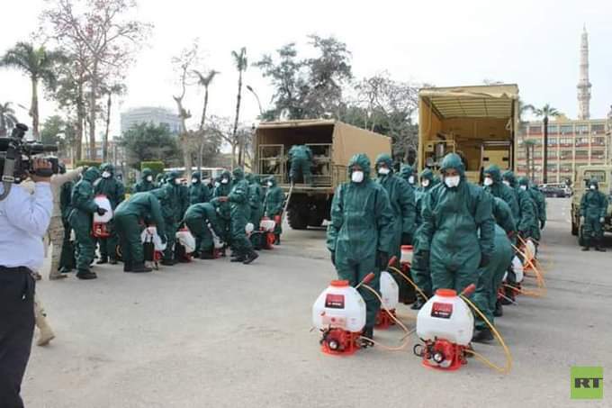أفاد مراسل RT في القاهرة اليوم السبت، بأن الجيش المصري بدأ تنفيذ أولى مراحل تعقيم وتطهير المنشآت العامة في إطار مواجهة فيروس كورونا.