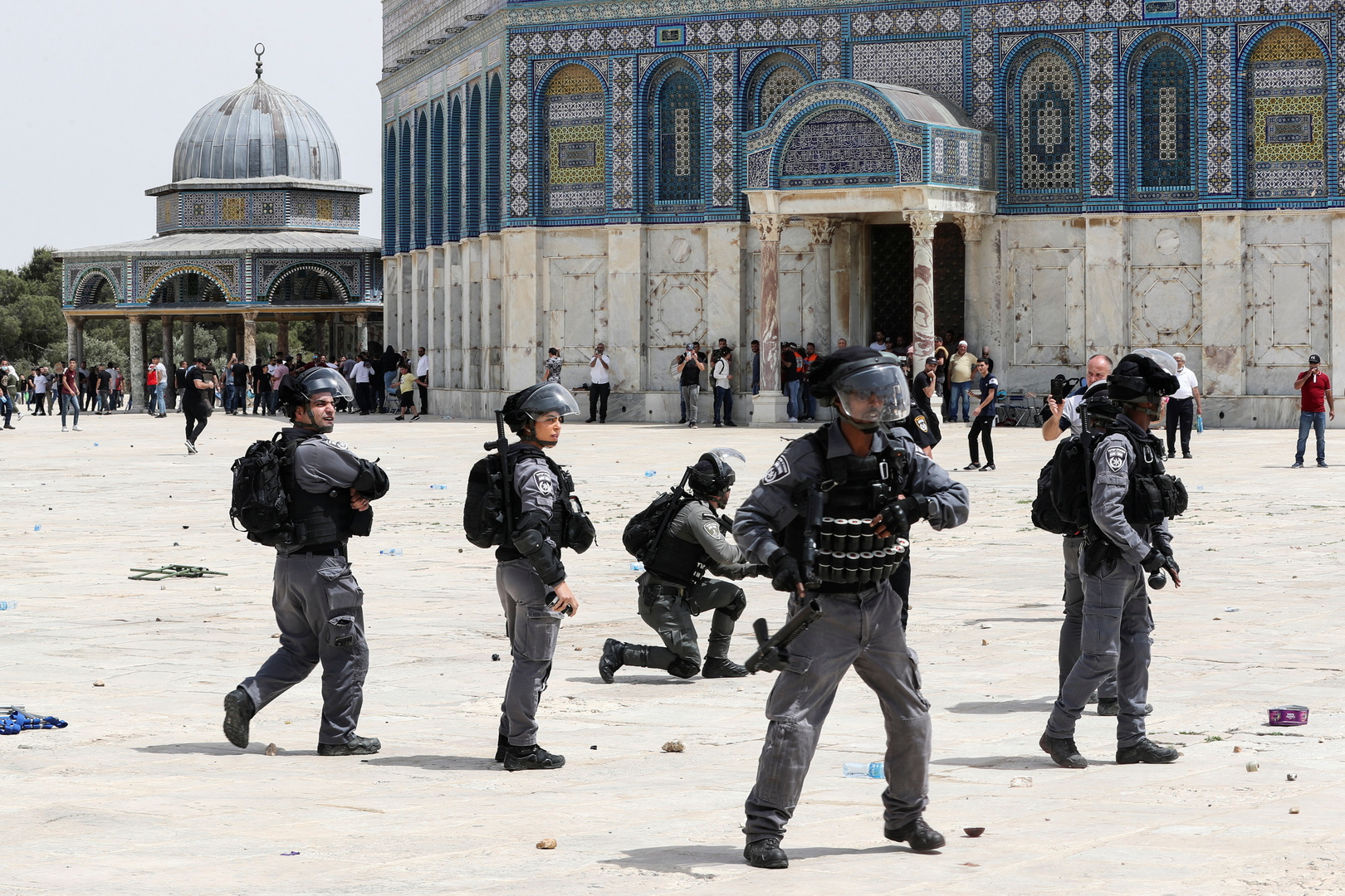 بدورها، قالت الشرطة الإسرائيلية إن مئات الأشخاص قاموا برمي الحجارة على أفرادها داخل باحات المسجد فردت بتفريقهم.