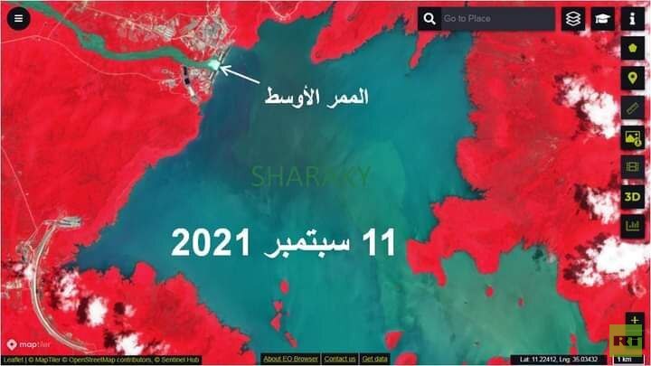 قال الخبير المصري عباس شراقي في حديث لـRT، إن الأقمار الصناعية اليوم الاثنين، أظهرت أنه بعد مرور 7 أيام من بدء التخزين الثالث بسد النهضة، اكتمل حجز أكثر من مليار م3 في السد.