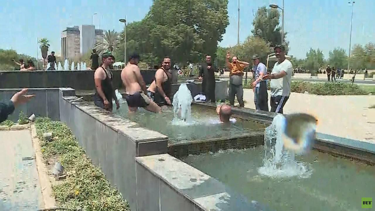 وفي حين شهدت هذه الاحتجاجات صدامات مع القوى الأمنية أسفرت عن عدد من الإصابات، قام عدد من المتظاهرين بالاستحمام في نافورة مجلس النواب العراقي.