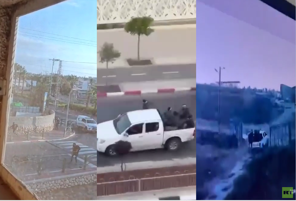 أظهرت مقاطع فيديو، اليوم السبت، مجموعة من المسلحين الفلسطينيين تنجح باقتحام مستوطنة سديروت المتاخمة لقطاع غزة.