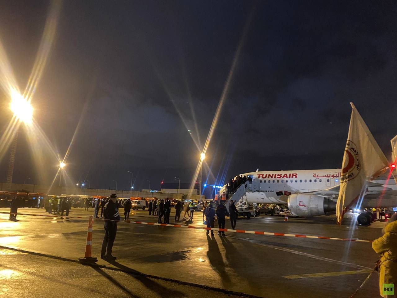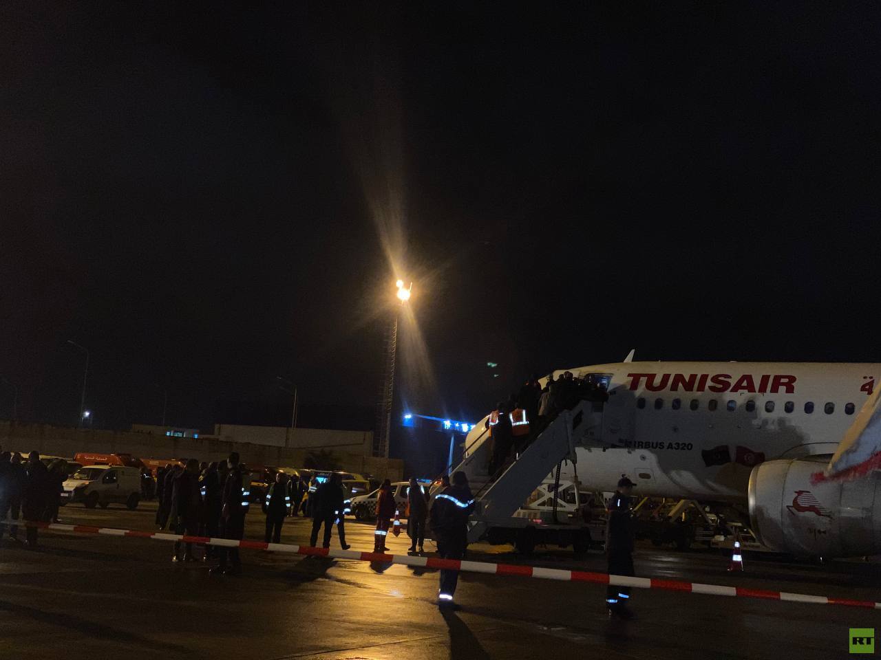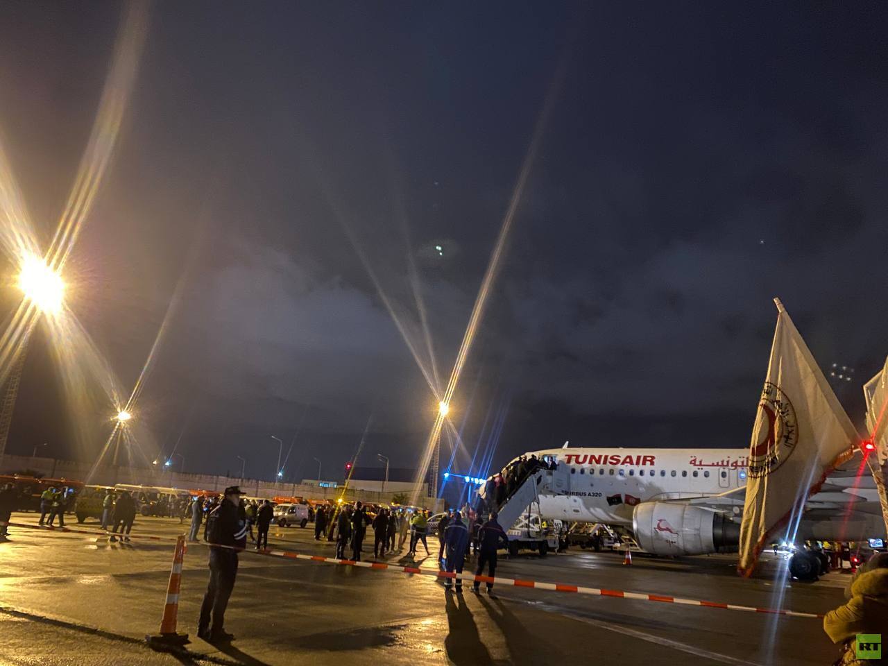 ووثقت عدسة RT لحظة وصول الطائرة إلى تونس.