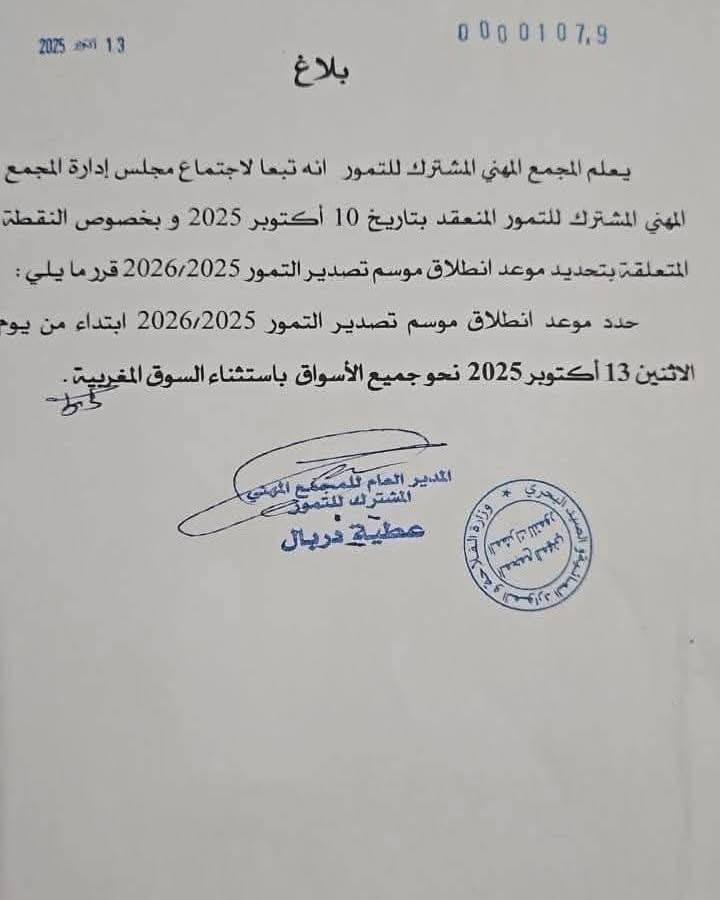 وصدر هذا القرار وفق بلاغ عن المجمع المهني المشترك للتمور في تونس، الذي أفاد بأن مجلس الإدارة اجتمع في 10 أكتوبر وقرر السماح بتصدير التمور إلى جميع الأسواق العالمية ما عدا السوق المغربي، دون أن يذكر الأسباب الحقيقية لهذا الإجراء المفاجئ.