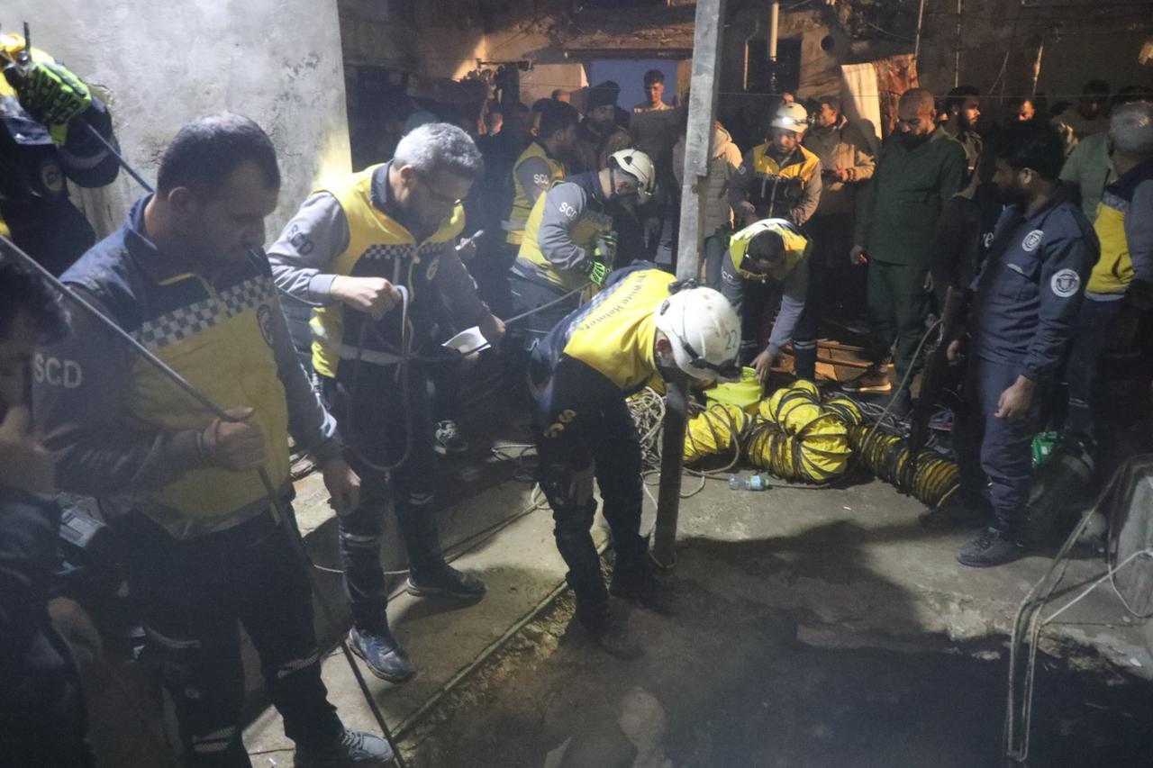 يبحثون عن الآثار.. محاولات لإنقاذ 4 أشخاص عالقين في حفرة عميقة بمحافظة اللاذقية شمال غرب سوريا (صور)