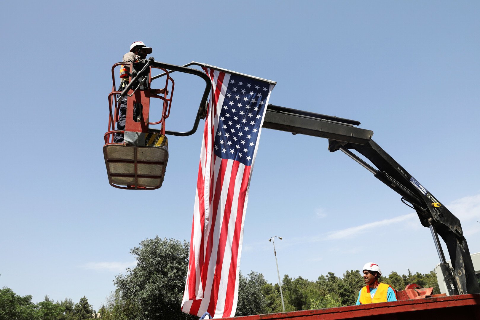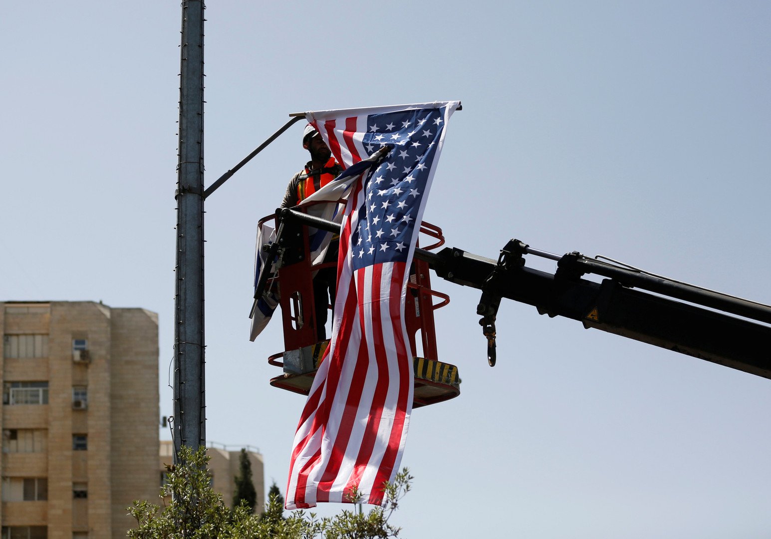 القدس تتوشح بالعلم الأمريكي استعدادا لزيارة ترامب (صور)