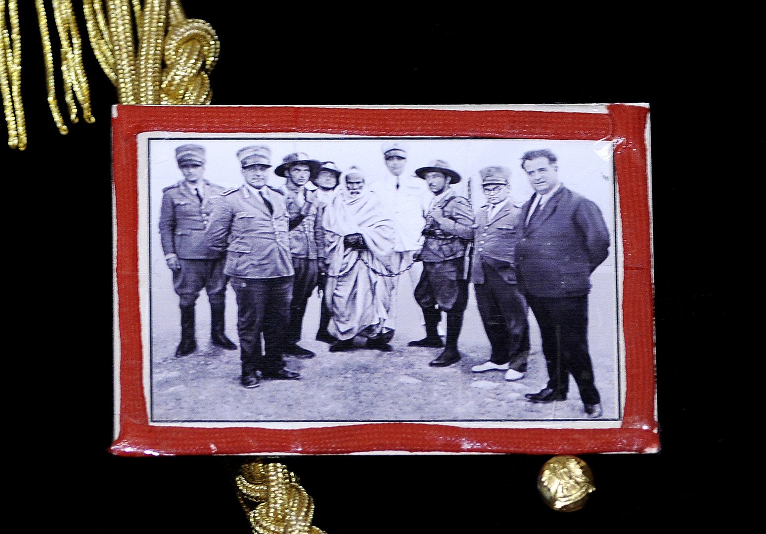 وكان القذافي يشتهر بولعه بالتعبير عن مشاعره وأفكاره بطريقة استعراضية، تبدو غريبة في كثير من الأحيان، فقد زار العام 2009 إيطاليا، ووضع على بزته العسكرية صورة لقائد المجاهدين الليبيين زمن الاحتلال الإيطالي عمر المختار محاطا بقادة عسكريين إيطاليين بعد اعتقاله نكاية بمضيفيه الذين أعدم أجدادهم المختار، رمز الجهاد الليبي ضد الغزو الإيطالي.