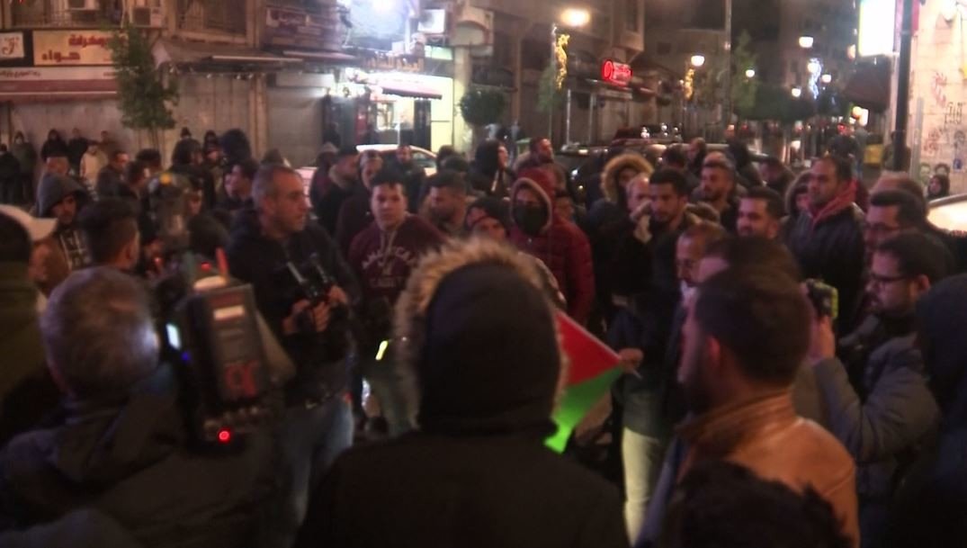 إلى ذلك، أطلق ملثمون النار في مسيرة حاشدة وسط مدينة رام الله تنديدا بالإعلان الأمريكي.