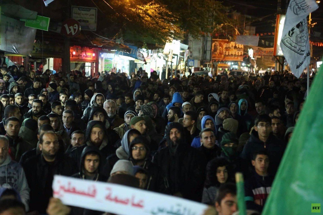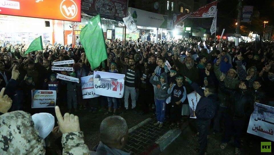 ونظمت حركة حماس مسيرات جماهيرية حاشدة بمدينة غزة وشمال ووسط قطاع غزة، مساء الاربعاء، تنديدا بالموقف الأمريكي تجاه مدينة القدس.