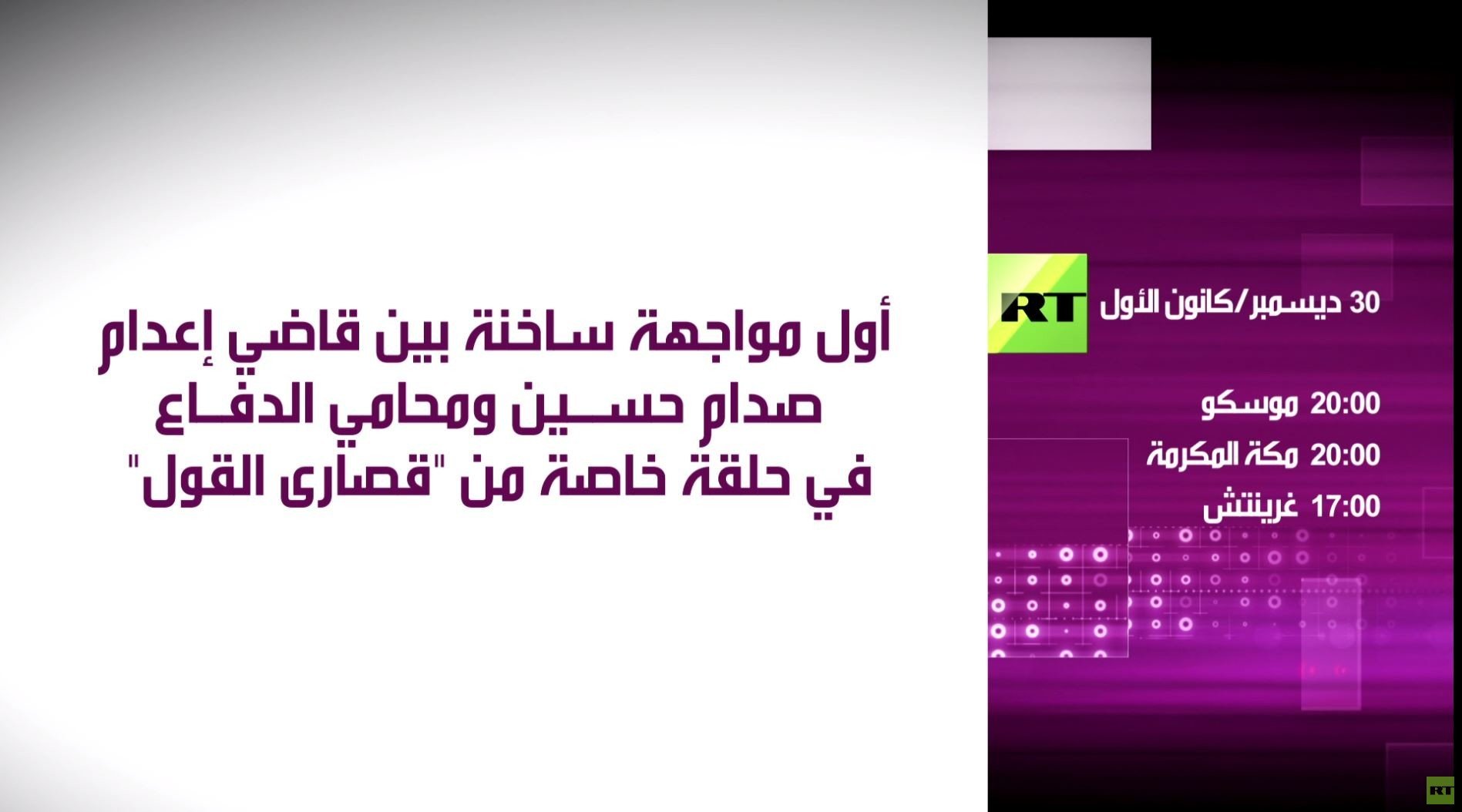 تعرض قناة RT مقاطع من محاكمة الرئيس العراقي الراحل صدام حسين لم تعرض على الهواء، من خلال برنامج قصارى القول الذي يقدمه الزميل سلام مسافر.