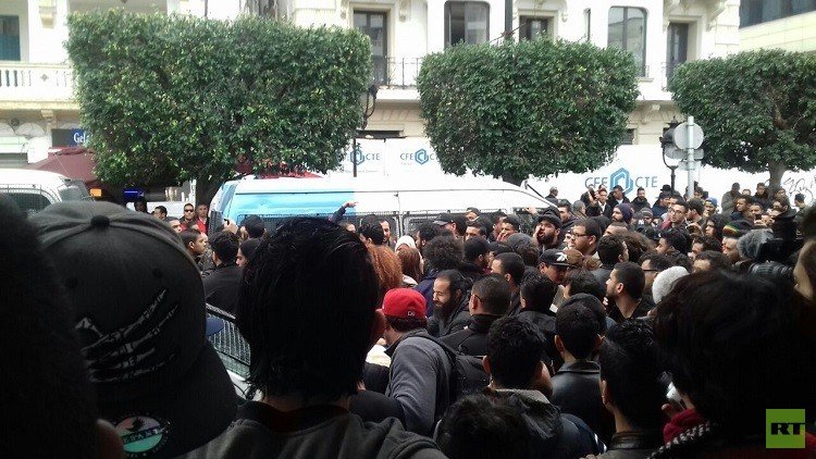 وكان وائل نوار، القيادي في حملة "ماذا ننتظر" بتونس، أكد لـ RT أمس الاثنين، أنه تقرر تنظيم مسيرة احتجاجية الثلاثاء وسط العاصمة احتجاجا على مقتل شاب، قال المحتجون إنه ناتج عن دهسه بسيارة أمن، فيما أعلنت الداخلية التونسية، أن سبب وفاته مرض مزمن، أدى إلى اختناقه بعد استنشاق غاز مسيل للدموع أثناء تفريق الاحتجاج.