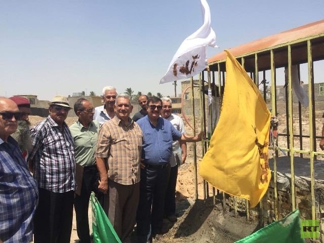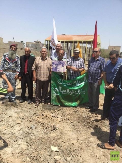 وكتب أتباع التيار القاسمي على الراية التي كانوا يحملونها أثناء مراسم الافتتاح (السلام عليك أيها الزعيم الصالح).