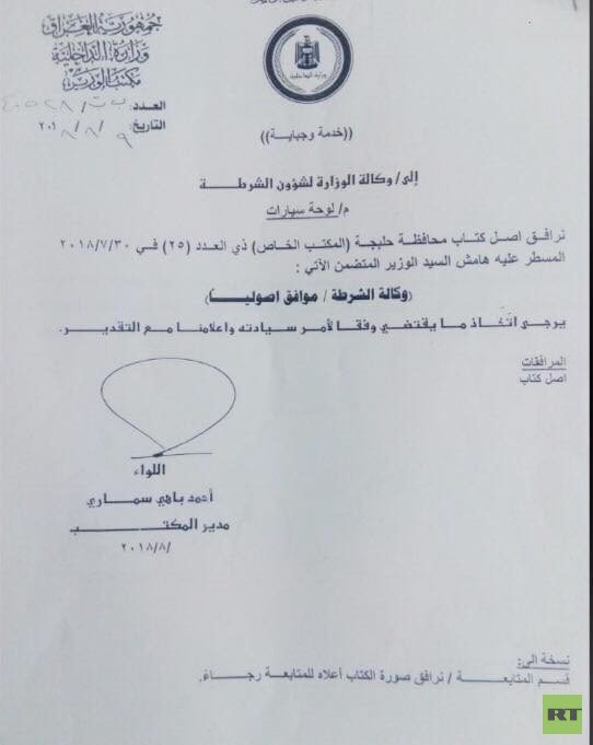 وتشير الوثائق الموقعة من مكتب وزير الداخلية، إلى استحداث دوائر خاصة بالبطاقة الوطنية وجوازات السفر وكذلك لوحات السيارات المرورية التي ستحمل اسم "حلبجة".