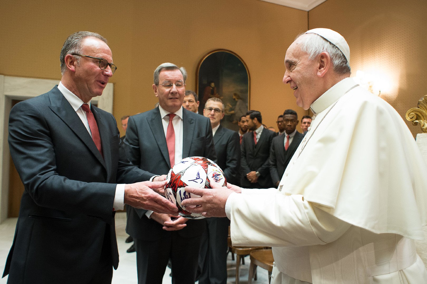التقت بعثة فريق بايرن ميونيخ الألماني، مع بابا الفاتيكان، بعد فوزه الساحق على فريق روما (7-1) في الجولة الثالثة لدور المجموعات لدوري أبطال أوروبا لكرة القدم يوم الثلاثاء.