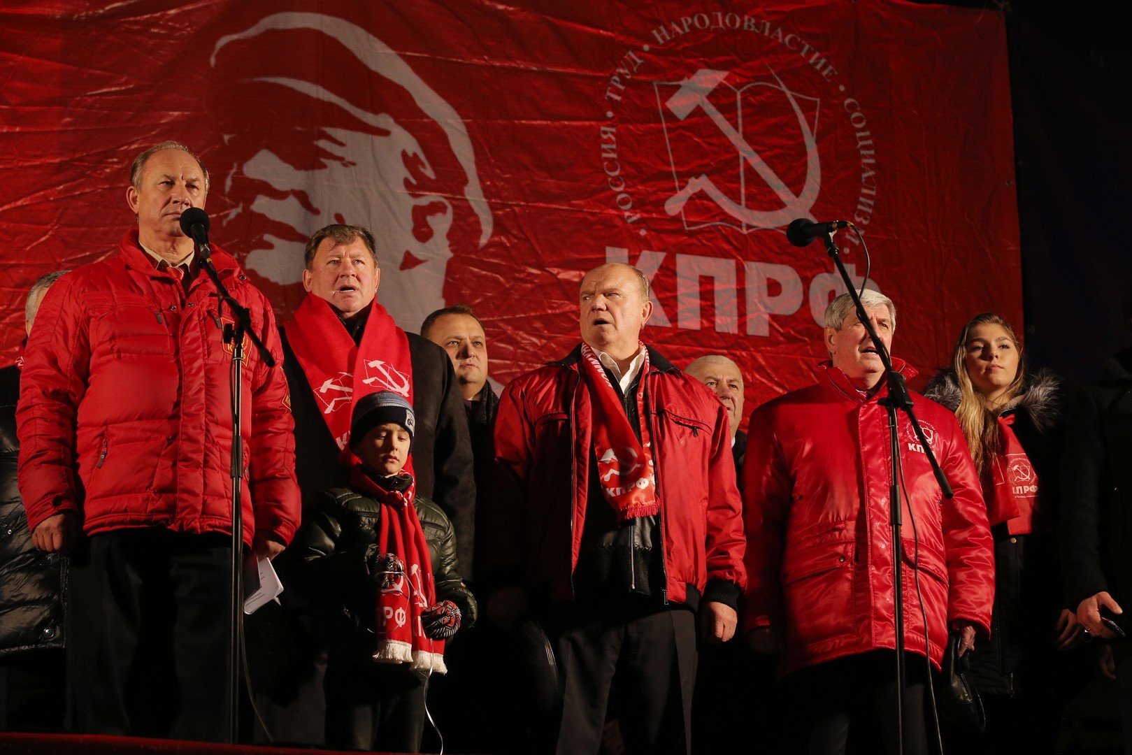كما حمل المتظاهرون صورا للزعيم السوفيتي الراحل يوسف ستالين وقائد ثورة أكتوبر، مؤسس الدولة السوفيتية فلاديمير لينين والمشير غيورغي جوكوف أحد أبرز قادة الجيش السوفيتي أثناء الحرب العالمية الثانية، بالإضافة إلى شعارات معادية للفاشية والنازيين الجدد.