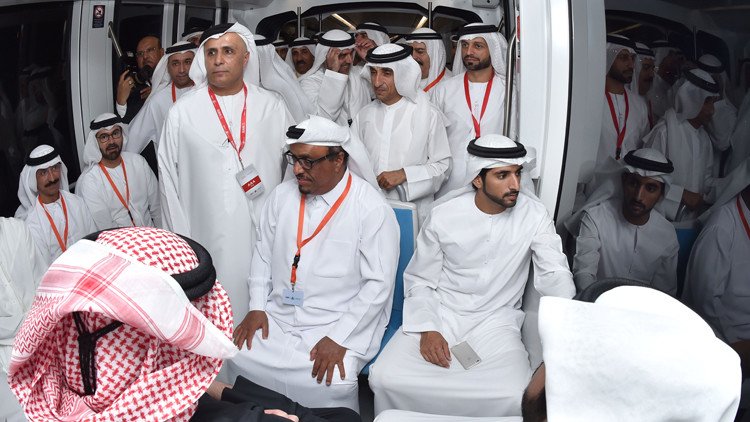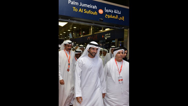 وصعد ولي عهد دبي، الشيخ حمدان بن محمد بن راشد آل مكتوم، على متن الرحلة الافتتاحية للترام أبيض اللون، الذي صُممت مقدمته على شكل ماسة.