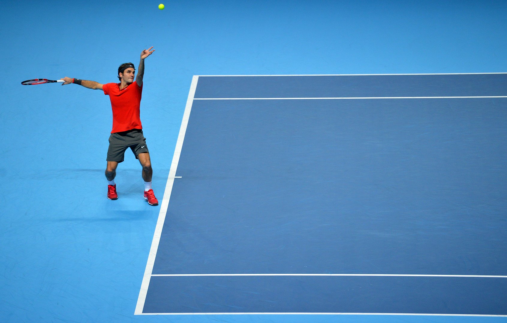 سحق السويسري روجيه فيدرر خصمه أندي موراي بمجموعتين 6-0 و6-1 ضمن منافسات المجموعة الأولى للدورة الختامية للتنس في لندن، وتأهل بذلك إلى نصف النهائي متصدرا مجموعته.