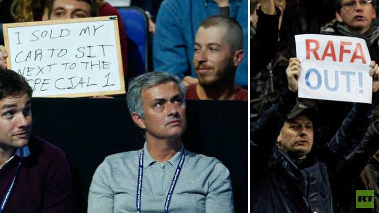 نشرت صحيفة ميرور صورة لأحد مشجعي فريق تشيلسي، وهو يرفع لافتة كتب عليها "بعت سيارتي حتى أجلس بجانب السبيشال وان"، وذلك أثناء جلوسه إلى جانب البرتغالي جوزيه مورينيو في مباراة تنس.