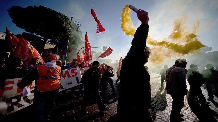 شهدت إيطاليا الجمعة 12 ديسمبر/كانون الأول إضرابا عاما تلبية لدعوة اتحادين نقابيين كبيرين ينظمان مسيرات في 54 مدينة احتجاجا على السياسات الاقتصادية والاجتماعية لحكومة ماتيو رنزي.